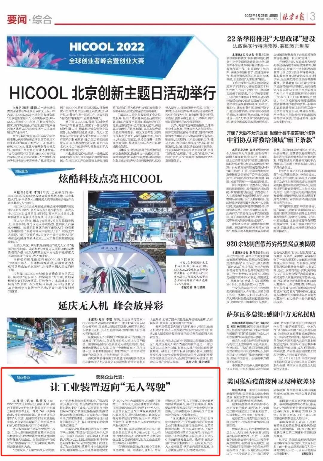 HICOOL2022全球创业大赛8月26日晚落下帷幕,位于中关村软件园的企业清云智通荣获本土组一等奖。“每一次获得肯定,我们都特别珍视。北京是公司总部的‘大本营’,能拿到咱们北京颁发的奖项,更是觉得沉甸甸的。”作为首席执行官,张志强在聚光灯下心潮澎湃。