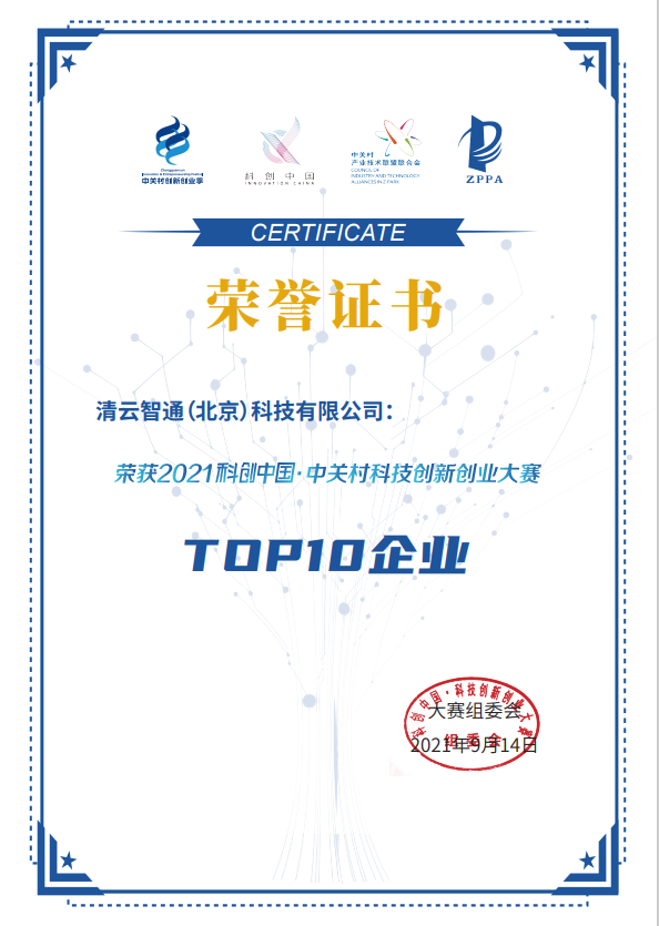 近日,“2021科创中国·中关村科技创新创业大赛”总决赛在京成功举办,历时近半年的赛事活动就此圆满落幕。清云智通(北京)科技有限公司执行总裁张天琦代表公司参赛。凭借过硬的技术先进性、出色的产品创新能力、良好的商业发展前景,清云智通获得大赛组委会的高度认可,在200多家企业中脱颖而出,荣获“2021科创中国·中关村科创大赛TOP10企业”称号。